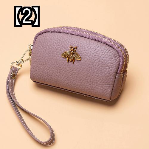 コインケース 小銭入れ ミニ財布 レディース ファッション シンプル ダブル ジッパー クラッチ 牛革 シェル コイン バッグ