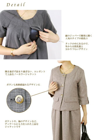 上質なウールを使用し、高級感溢れるデザインです ワンピースは、タックの中にジッパーがあるので、外からは授乳服とわかりづらいデザインとなっており、マタニティから産後、卒乳後まで長く着ていただけます。